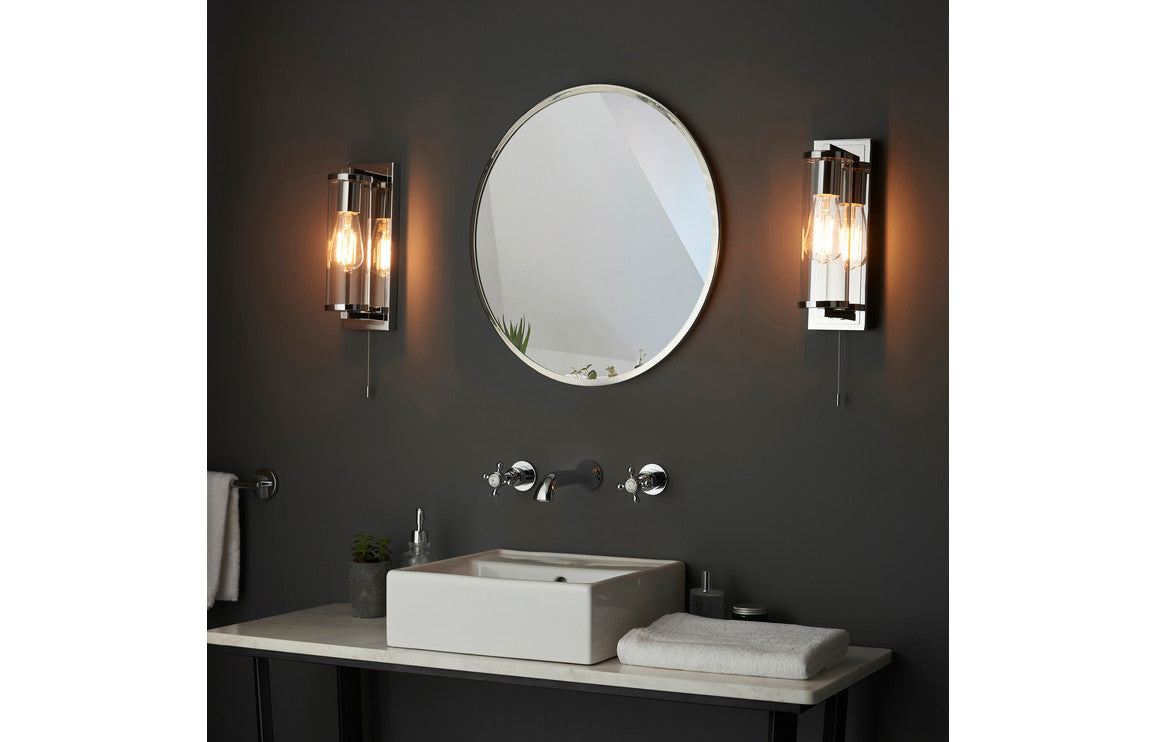 Introducing the Finlay Wall Light in a sleek Chrome finish, designed to enhance the aesthetic appeal of your living space. With dimensions of H 315 x W 100 x D 123mm, this wall light features polished chrome metalwork paired with a clear ribbed glass diffuser, creating a sophisticated and contemporary lighting solution. The Finlay Wall Light is not only a stylish addition to your décor but also practical with an IP44 rating, making it suitable for use in bathroom zone 2. This ensures durability and versatility, allowing you to bring a touch of elegance to your bathroom or other living spaces. The easy reach on/off pull cord switch adds convenience to the functionality of the Finlay Wall Light, allowing you to control the lighting effortlessly. Pair this wall light with an E27 filament bulb, such as the DIFL0126 (bulb not included), to achieve the desired illumination and ambiance. With a 2-year guarantee, the Finlay Wall Light provides assurance of its quality and durability. Elevate your interior with the contemporary design and polished chrome finish of the Finlay Wall Light, creating a welcoming and stylish atmosphere in your home.